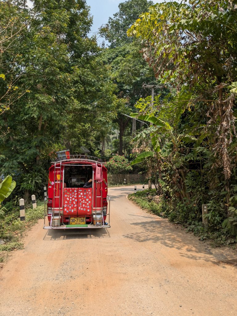 - Songthaew: interesante especialmente para grupos grandes, el vehículo más típico de Chiang Mai es otra opción. Igual que con el taxi, necesitarías primero contactar y negociar tarifas.